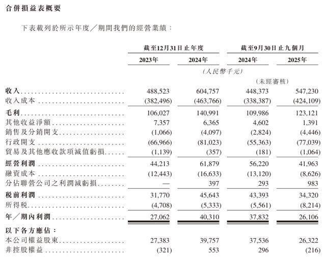 2024、2025年,锦欣康养的毛利率保持在23%左右。2023年全年营收为约4.89亿元,2024年全年增长至约6.05亿元,同比增长23.7%。2025年前九个月实现营业收入约5.47亿元,相较2024年同期的4.48亿元亦有增长。